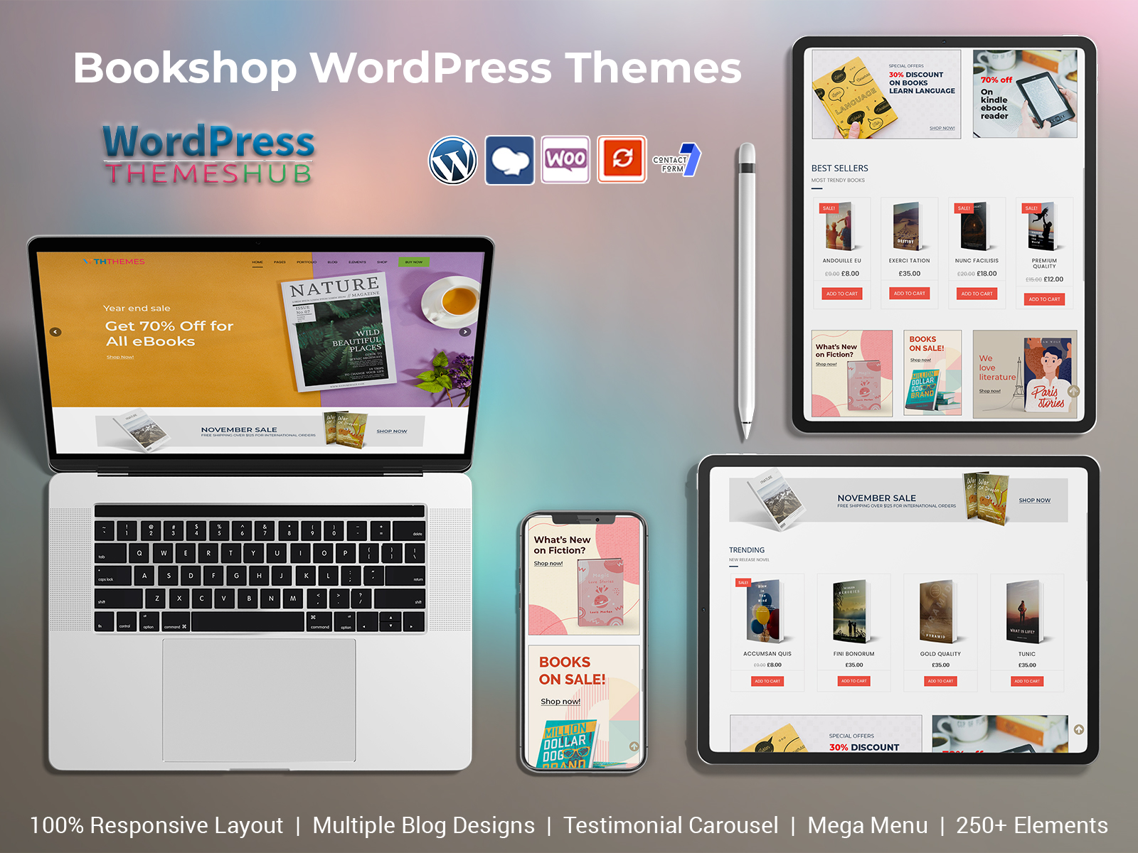 ebookstore Multipurpose Responsive WordPress Themes Provides Elements and it consists of Buttons, Carousels, Messages & Callouts, Google Maps & Video, Grid, Progress Bars, Counter and Skills, Countdown Timer, Text Banners, Dividers, Sliders, Images, Accordions, Features Box, Tabs, Subscribe, Fancy Boxes, Text with Icon, Headings, Tabs & Tours, Alert Messages, Parallax Backgrounds, Form, Typography, Text Slider, Information Banners, Image Gallery, Icon, Accordions & Toggles, Bars & Pie Charts, Video/Sound, and Call To Action.