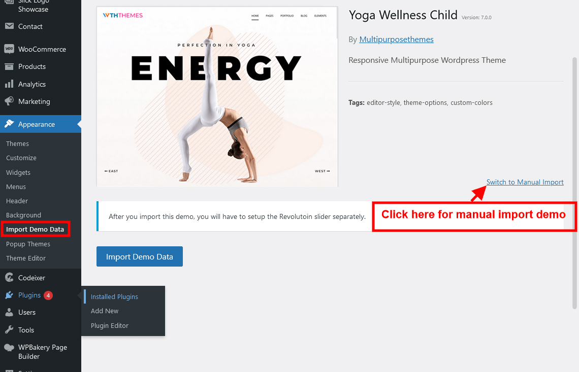 Appearance → Import Demo Data → Import Demo